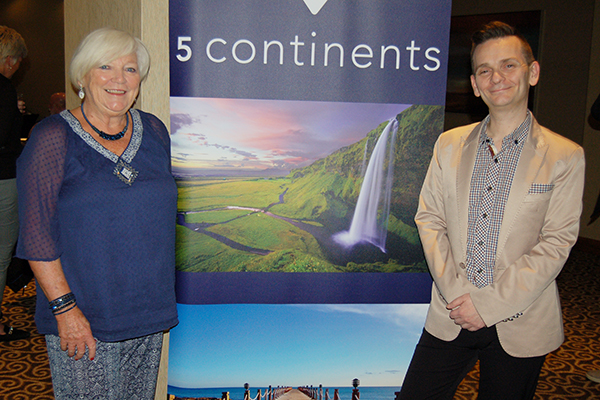 Representing 5 Continents during their Vancouver visit with inbound operator partners to meet travel retailers over a dinner presentation was (l.) Michele Rauzon, the North America sales director for 5 Continents; and David Boigne, managing partner of the company.
