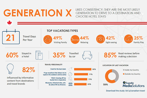 “Interestingly, we saw a lot of similarities among the generations of Canadian travellers than we did in other countries, which is good news for marketers looking to attract this audience,” said Wendy Olson Killion, global senior director at Expedia Media Solutions. “Marketers can efficiently reach a broader Canadian audience by highlighting activities and price through appealing imagery and deals, which are important to all generations. This research provides informative insights on traveller preferences and behaviour to help marketers optimize and successfully reach Canadians.”