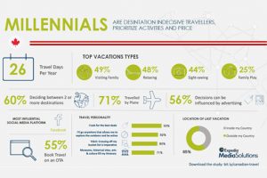• Millennials travel 26 days a year and prefer to explore international destinations, as they are most likely to travel beyond their borders (65%). Tackling their bucket list, #YOLO experiences and finding off the beaten path locations are important to Millennials, but they also look to fill their itinerary with museums, historical sites, arts and culture more than other generations (71%).
