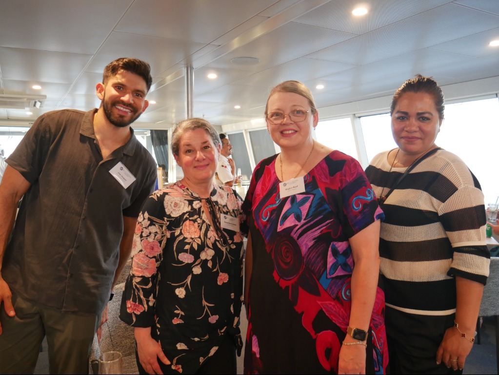 From l to r, are Jean Vasquez, EF Educational Tours; Genevieve Gobeil, 5Continents; Meghan Boyd & Fabiola Gama from Goway check out the offerings of the new Yasawa Princess II.