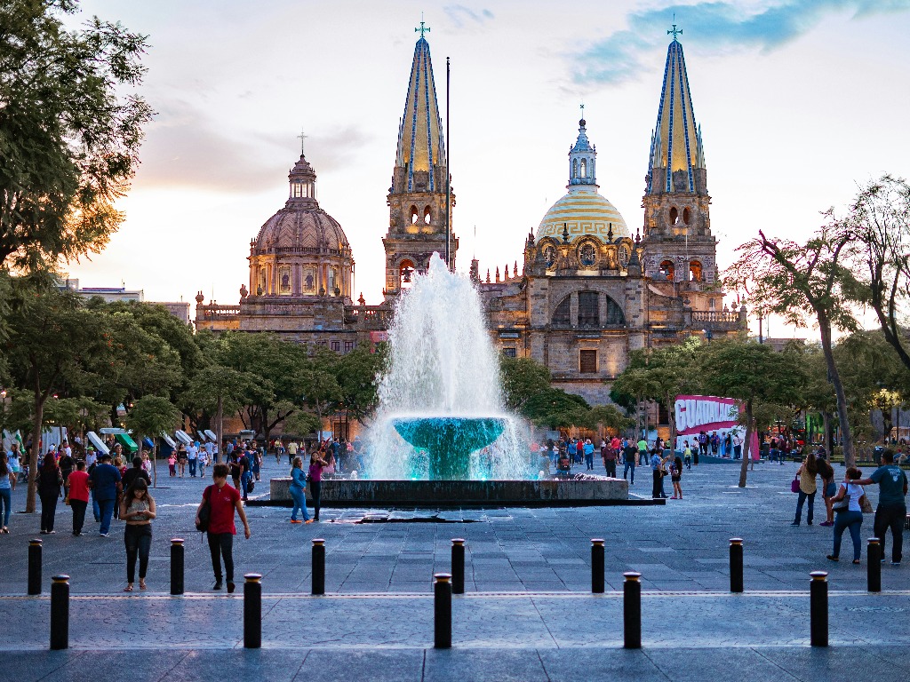 Guadalajara’s historic centre is highlighted by colonial plazas and landmarks such as the neoclassical Teatro Degollado and the regal twin-spired Guadalajara Cathedral.