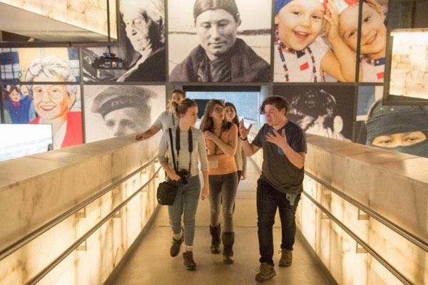 Visitors can also explore the museum’s exhibits at their leisure, ascending to galleries on seven levels along illuminated alabaster ramps, or taking the glass elevator ride to the panoramic viewing platform in the Israel Asper Tower of Hope.