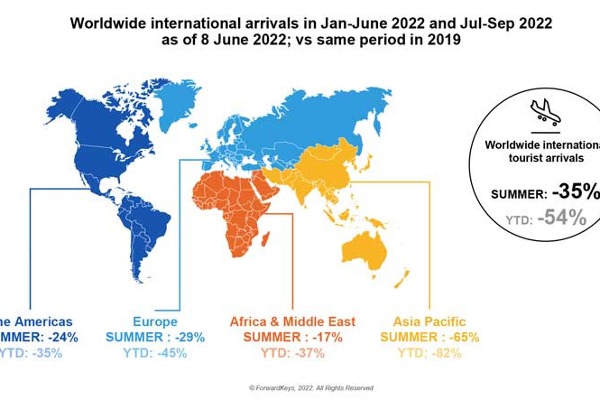 The region of the world that is on course to recover most strongly is Africa & the Middle East; its arrivals in Q3 are expected to reach 83% of 2019 levels. It is followed by the Americas, where summer arrivals are expected to reach 76%, and then by Europe, 71%, and Asia Pacific, just 35%.