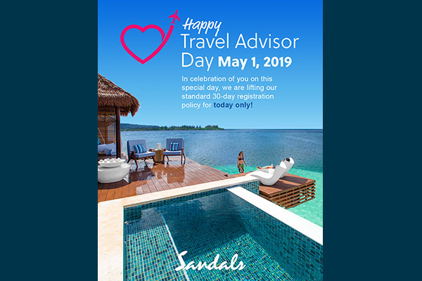 For today only — May 1, 2019 — agents have the exclusive opportunity to register all of their missed bookings online at taportal.sandals.com.