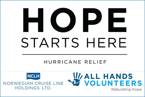 To help hurricane relief and recovery, and to make a donation that will be matched by Norwegian Cruise Line Holdings Ltd., visit http://www.ncl.com/hope-starts-here.