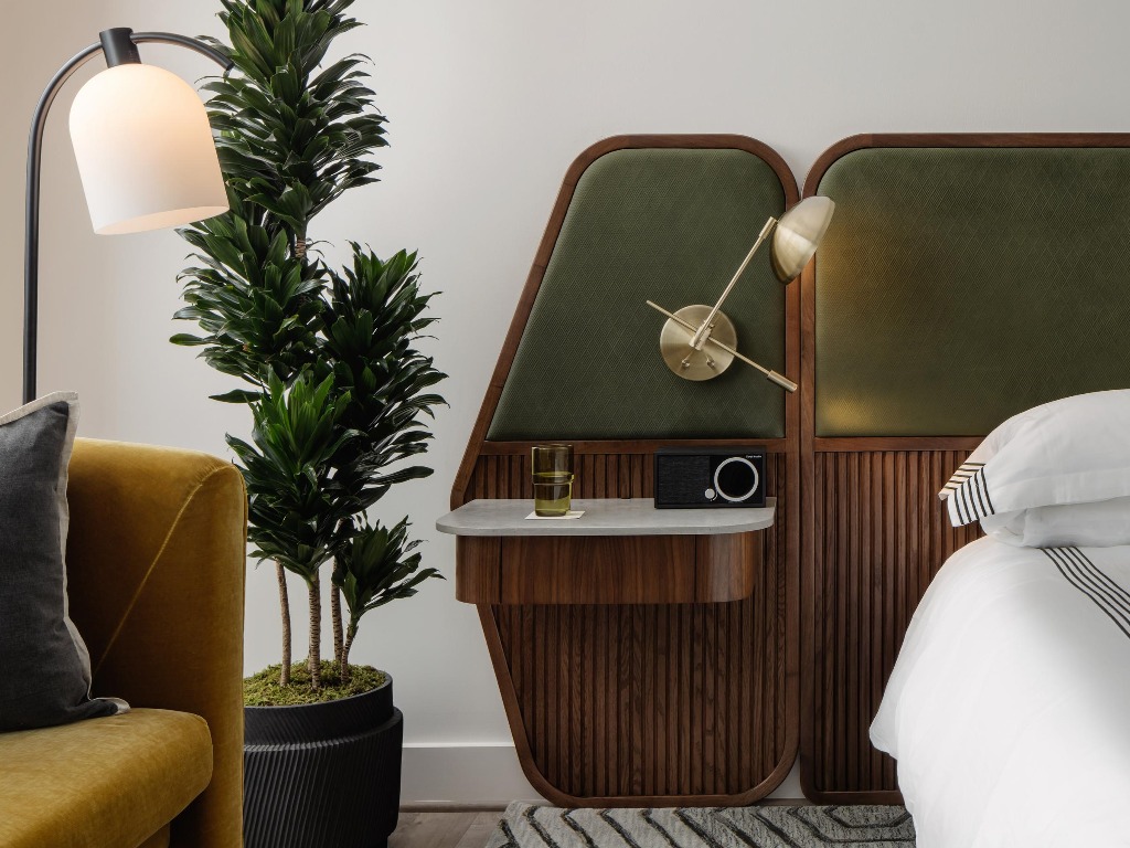 The new-build hotel is housed within a sleek glass and exposed-steel building that displays curved lines designed by award-winning architect, HOK. Interiors are designed by Houston-based architecture and design firm Abel Design Group featuring warm earthy colours, organic materials, brass fixtures, and hardwood floors paying homage to the hotel’s natural setting of nearby Buffalo Bayou Park.