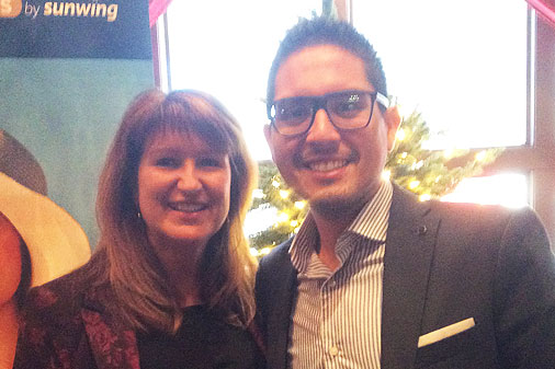 In the photo (l-r) Sunwing’s Deana Murphy and RIU’s Hugo Aguilera get ready to celebrate the holiday season with their top travel agency partners at a special appreciation luncheon in Toronto yesterday.