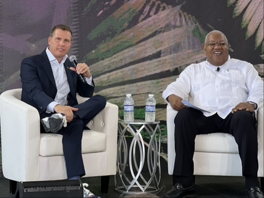 The Jamaica Tourist Board’s Donovan White addressing travel advisors (credit – Sandals)