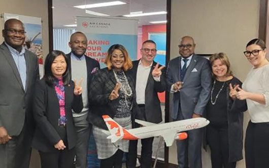 Minister of Tourism, Edmund Bartlett (3rd on the right) and Director of Tourism, Donovan White visited Air Canada Vacations’ offices along with Dan Hamilton, District Sales Manager, Jamaica Tourist Board, Shirley Lam, Manager Product Development, Air Canada, Angella Bennett, the JTB’s Director for Canada, Nino Montagnese, Vice President, Air Canada Vacations (ACV), Dina Bertolo, Vice President, Product Development, ACV and Audrey Tanguay, Manager, Global Sales and Tourism Partnerships, Air Canada.