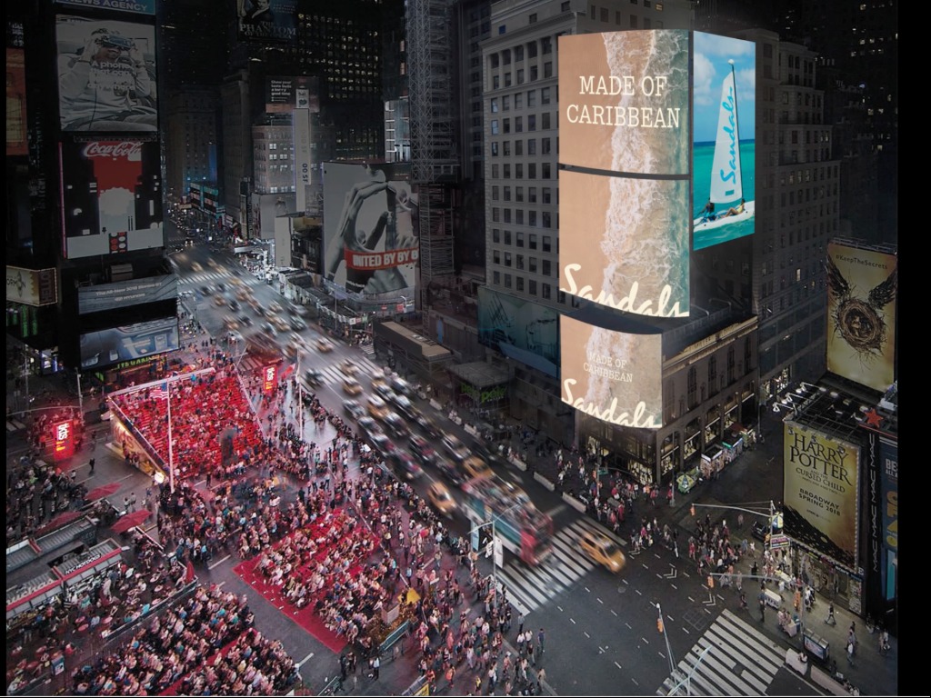 The evening will also bring attention-grabbing video displays throughout New York City and Chicago, with Sandals-branded ride share cars that will come together in swarms at key moments.