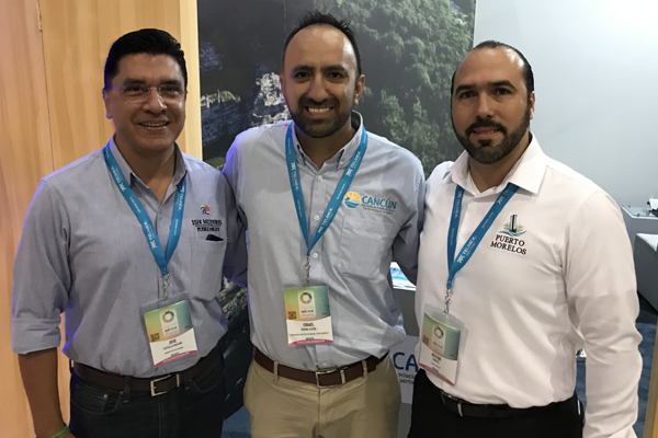 From l to r, are Isla Mujeres’ Jose Castillo; Israel Urbina of the Cancun Hotel Association; Hector Tamayo representing Puerto Morelos.