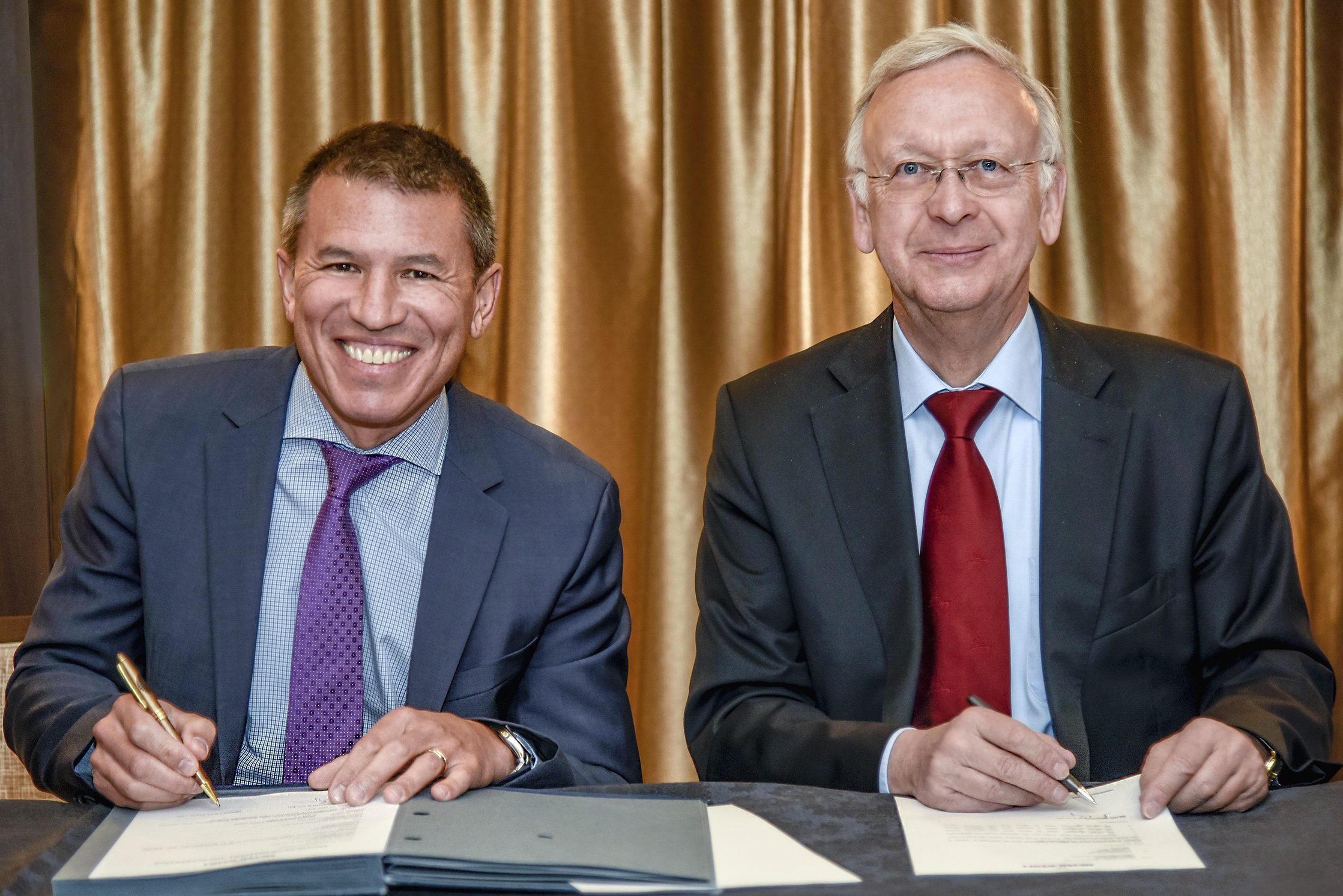 Pictured above, Norwegian president and CEO Andy Stuart (l) and Meyer Werft managing partner Bernard Meyer.