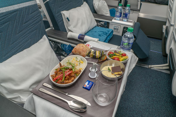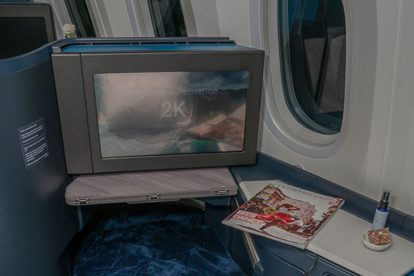 Lie-flat seating in the new Business cabin complete with luxurious pillow and blanket and noise cancelling headphones