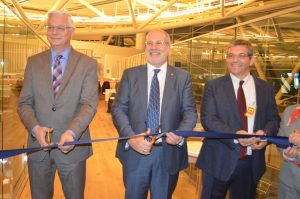 Pictured, a ribbon cutting signaled the official opening of the new SkyTeam executive lounge at YVR, and doing the honours were (l-r) Craig Richmond, president of Vancouver Airport Authority, Perry Cantarutti, CEO of SkyTeam, and Jeffrey Stern, CEO of Global Lounge Network.