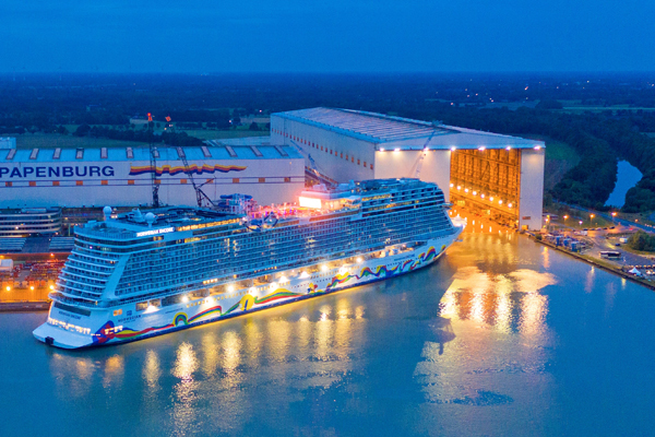 “To see the ship emerge from the shipyard is always one of the most exciting construction milestones,” said NCL president Andy Stuart. “Our partners at Meyer Werft have been committed to our vision for not only Norwegian Encore, but for this industry leading class of ships, supporting our dedication to delivering our guests the best cruise vacation at sea.”