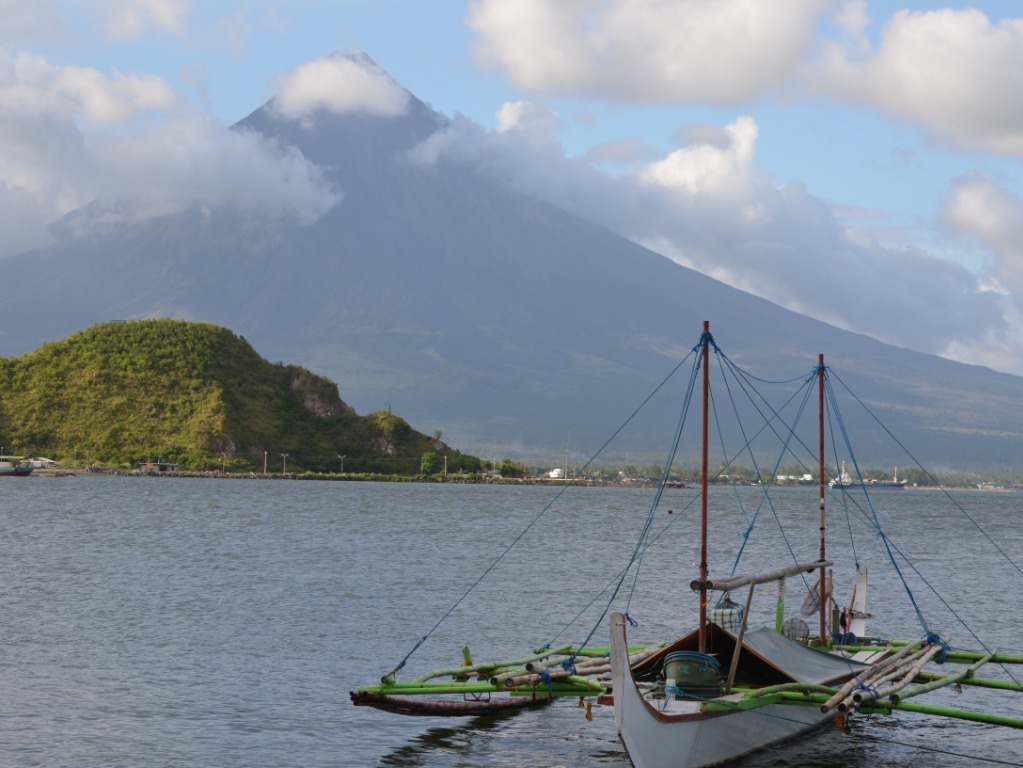 The Mayon volcano near Legazpi in the Philippines is still very active and erupts periodically.