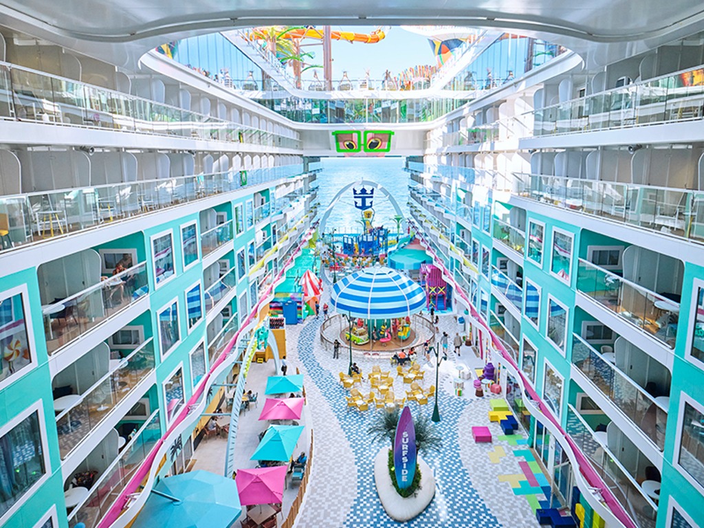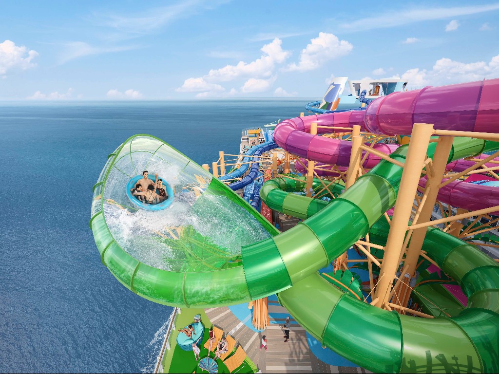 On deck is everything from the six adrenaline-pumping waterslides at Category 6 waterpark and seven pools – one for every day of the week – to the Surfside neighbourhood designed for young families and what will be one of only two suspended infinity pools at sea – the adults-only Hideaway.