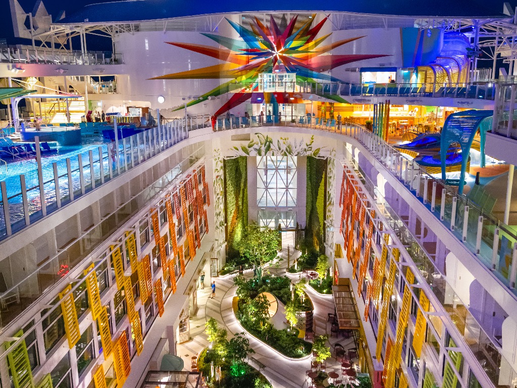 Thrill Island – There are thrills of all kinds with Category 6, the first waterpark at sea when introduced on Icon, and its six record-breaking waterslides – from family raft slides to a drop slide and mat-racing duos; Crown’s Edge, the part skywalk and thrill ride 154 feet above the ocean; plus longtime favorites, the FlowRider surf simulator and mini golf, and spots to grab a bite and drinks like Basecamp and Desserted.