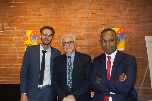 In the second photo, from l to r, are: Jérémie Abessira – Executive Director – European Union Film Festival; Pierre-Emmanuel Jacob, Director of the Alliance Française; and Tudor Alexis, Consul General of France in Toronto.
