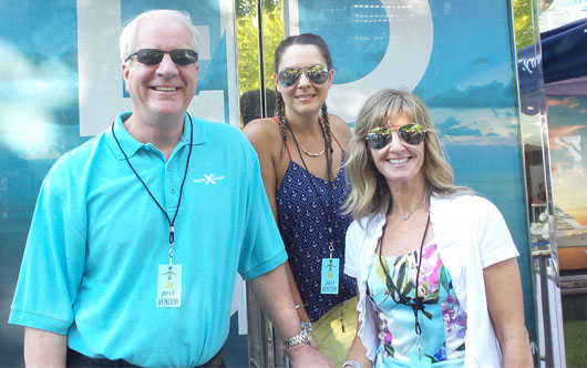 Celebrity Cruises made stops in the Toronto area this past weekend as it brought a new experience to lovers of cinema and travel with its unique mobile cinema tour. The luxury line is taking the story of Celebrity Edge on a cross-country journey and offering attendees a sneak peek with its custom-built 91-seat high-definition mobile cinema featuring a 15-minute cinematic experience, including a 3-D animatic reveal of its newest class of ships. Pictured in Toronto are (l-r) Celebrity’s Ken Brooks, Jennifer Barker and Brenda Yeomans.