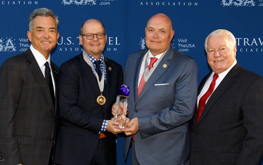 TravelBrands has been recognized as a Chairman’s Circle honoree. The U.S. Travel Association and Brand USA honoured representatives from the world’s highest-volume tour operators and buyers of US travel and hospitality services, including TravelBrands, at its annual Chairman’s Circle Honors event held on June 3. “We are pleased that our efforts to bring Canadians to their favourite American destinations have been recognized,” says Elvi Cal, V.P. Product Development, TravelBrands. “This honourable status provided by Brand USA and U.S. Travel Association inspires us to contribute even more to both the US and Canadian travel industry.” Pictured, Roger Dow, president and CEO, U.S. Travel Association, Cal, Dave Paterson, V.P. Strategic Partnerships and Business Development, and Chris Thompson, president and CEO, Brand USA.