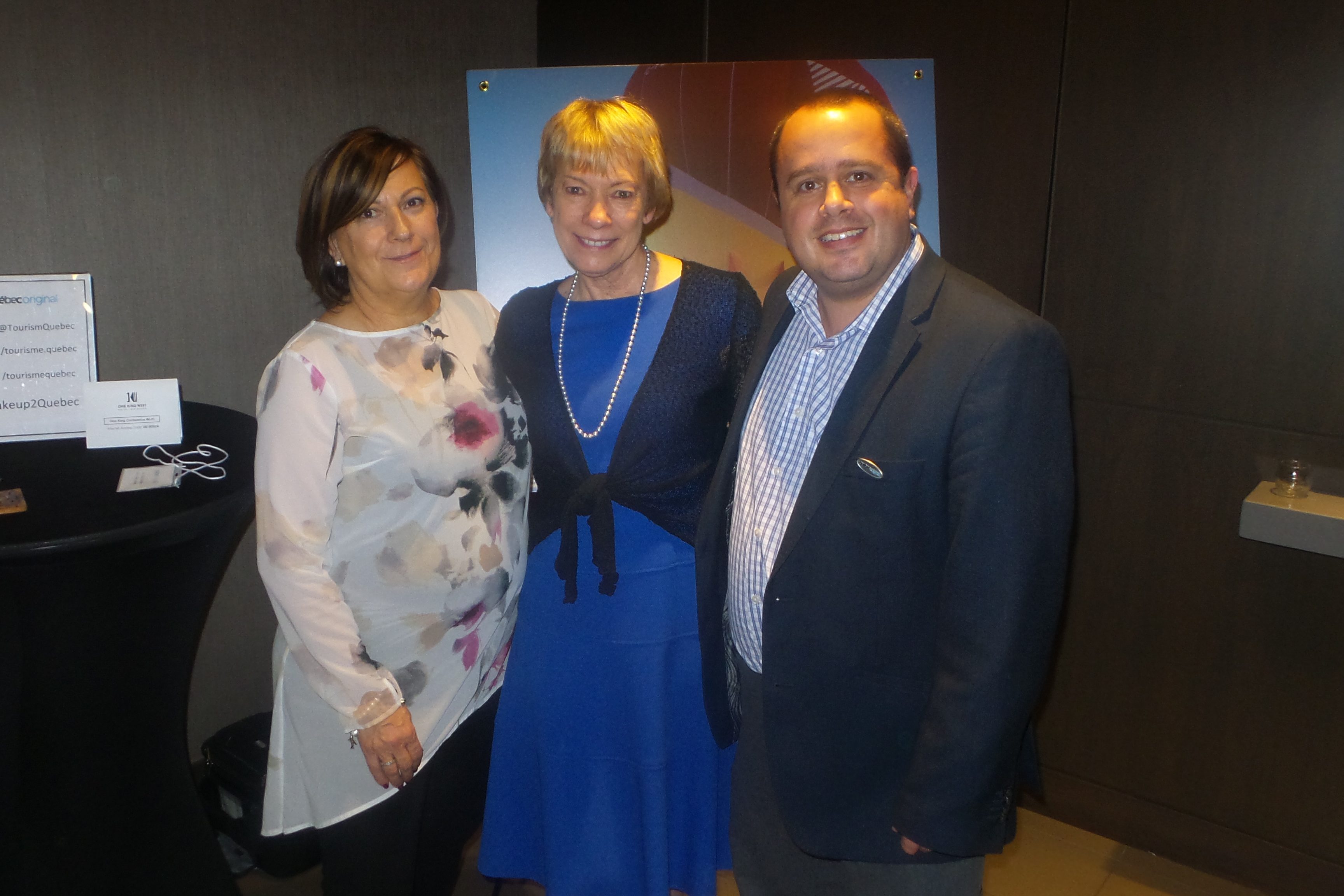 Seen here are Destination Quebec’s Gerlinde Perrera, Hall and Juan Pablo Suarez.