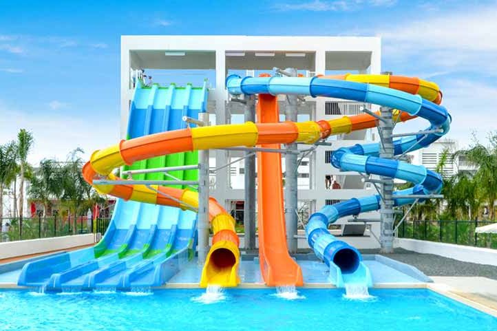 Splash Water World has “four intrepid slides” exclusively for guests of the Riu Republica, making it the second park of this type RIU has in Punta Cana. After the expansion, the resort has eight swimming pools, three of them with swim-up bars and one covering 900 square metres. The pools are surrounded by sun decks with lounge chairs.