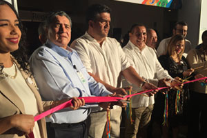 Pictured is the show’s official ribbon cutting with, from l to r, Ludwig Estrada Virgen, Costalegre Tourism Board, Alvaro Garciarce, president, Puerto Vallarta Hotel Association, and PV mayor Arturo Davalos (smiling).