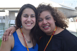 And here, Michele Cota, industry relations manager for Visit New Hampshire (l.), poses for a photo with Charmaine Singh, president of CWW (Connect WorldWide) at the reception for Canadian delegates on day one of IPW 2017.