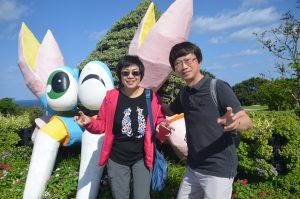 Pictured, tour operator reps Vicky Ho, general manager at Royal Scenic Holidays, and Ricky Poon, VP of corporate planning at Silkway Travel & Cruise, who met a giant crustacean outside of the Churaumi Aquarium on a recent fam trip to Okinawa.