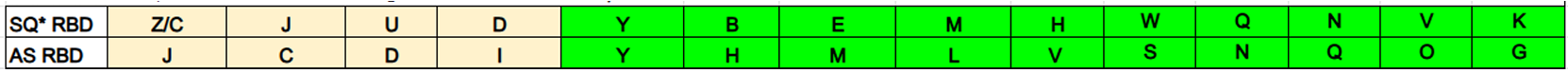 • Rebook onto AS prime flights in the equivalent AS booking class reflected in the table below: