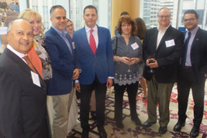 Pictured are Rudoph Nareen of Astor Travels; Michele Martinson of AeroMexico; Cesar Mendoza of the Mexico Tourism Board; Esponda; Monica Vidal-D’Erman and Gonz Moreno of Moreno Travel; and Cesar Alvarenga of AeroMexico.