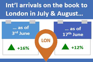 Looking ahead, the latest data shows that, as of June 17th, forward bookings for international arrivals in London for the months of July and August are currently 12% ahead of what they were at the same point last year. This is a significantly more positive position than the European average, which is currently 7.8% ahead.