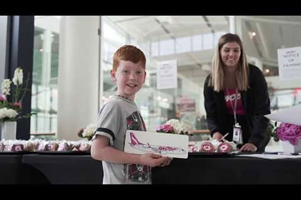 A small Swoop team was on hand in Edmonton to kick off the festivities, which included celebratory décor and refreshments at the gate. Travellers were encouraged to record their favourite travel stories at the Swoop Stories Video Booth to be shared on the Swoop social channels. Every traveller received an exclusive Swoop luggage tag, promo code and the hugely popular, Swoop piggy bank.