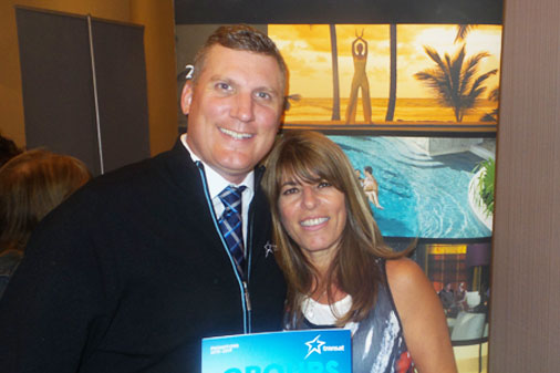 Pictured at the Toronto event are Transat’s Ontario sales manager Dan Prior and Mary Santonato, director groups, Ontario & Atlantic Canada.