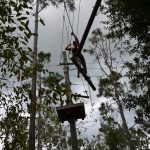 Participants swung on Tarzan ropes, climbed ladders up to 50-feet high, leaped into hanging nets, crossed wobbly suspended bridges, navigated swinging logs and soared on zip lines as they made their way through the courses in staggered start times. (Trust us, it’s harder than it looks, despite how easy Air Canada’s Jamie Fox may make it look in the photo.)