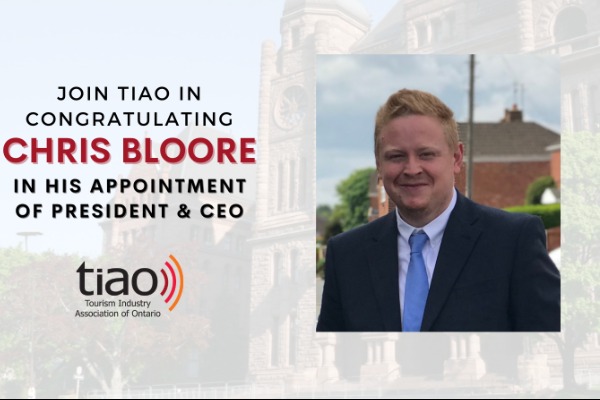 Christopher Bloore is the new president and CEO of the Tourism Industry Association of Ontario (TIAO). Bloore will take on his new rolel beginning May 17, 2021.