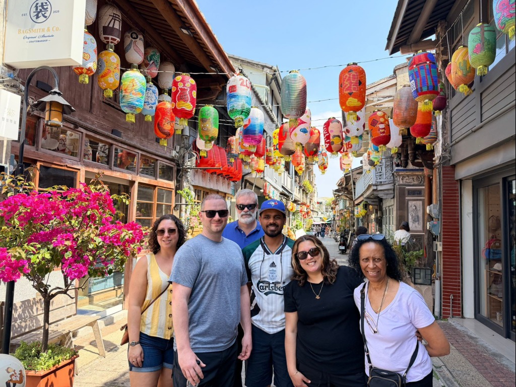 In Taipei, the group visited the National Palace Museum and Taipei 101 Observatory for panoramic city views, before exploring the coastal district of Tamsui—sampling local food along Old Street, strolling the riverside, and taking in views of the iconic Danjiang Bridge and Fisherman’s Wharf.