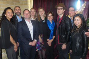 Seen here are Marie Anne MacRae, The Travel Corporation; Damien Bennett, Busabout; Jeff Element, The Travel Corporation; Lauren Howard, Contiki; Angela Bokma, Trafalgar; Shubert; Prescott; Cris David, Insight Vacations; and Michelle Lee Hoy, The Travel Corporation.