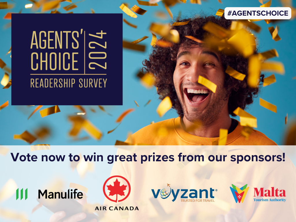 Last year, 6,551 travel agents voted in the survey, a record number. Thanks to our survey sponsors—Air Canada, Voyzant, Manulife, and Malta Tourism—this year, we’re going even bigger.