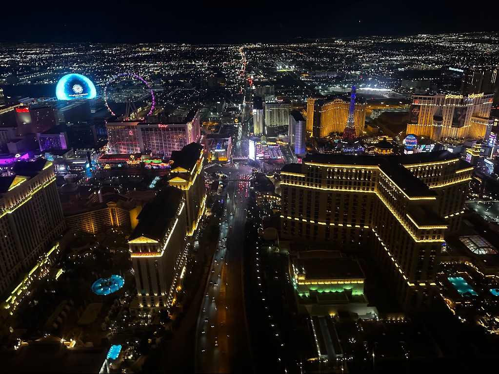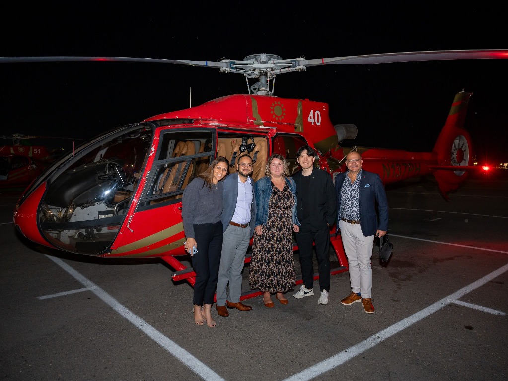 Following the launch flight, the group, which also consists of Sam Youssef, TravelBrands; Jessica Groen, Flight Centre Travel Group; Adeline Piekham-Hsieh, Royal Scenic; Raina Williams, Expedia; Shahbaz Khan, Air Miles; Susan Wehmeyer, Wynford and David Han, LVCVA; took to the skies again for a helicopter tour above downtown with Papillon Helicopters.