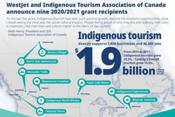 Nine Indigenous tourism businesses across Canada are receiving grants of $10,000 as part of a strategic partnership between WestJet and the Indigenous Toursim Association of Canada (ITAC).