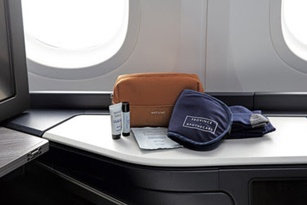 Business cabin guests departing on European-bound transatlantic flights will receive tan-coloured amenity kits, designed by Montreal’s Matt & Nat, while guests departing to Canada receive navy-coloured kits. The kits feature organic skincare products from Toronto’s Province Apothecary that use only the highest quality ingredients sourced from provinces across Canada.
